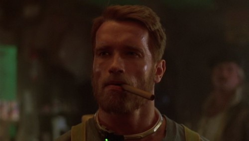 Arnold in the opening scenes of Running Man: A true man's man