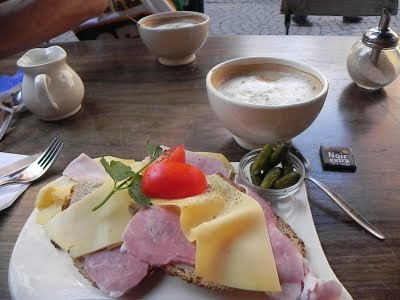 Ham and Gouda Sandwich con Cappuccino